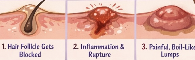 - Your body responds with inflammation, creating painful, deep lumps